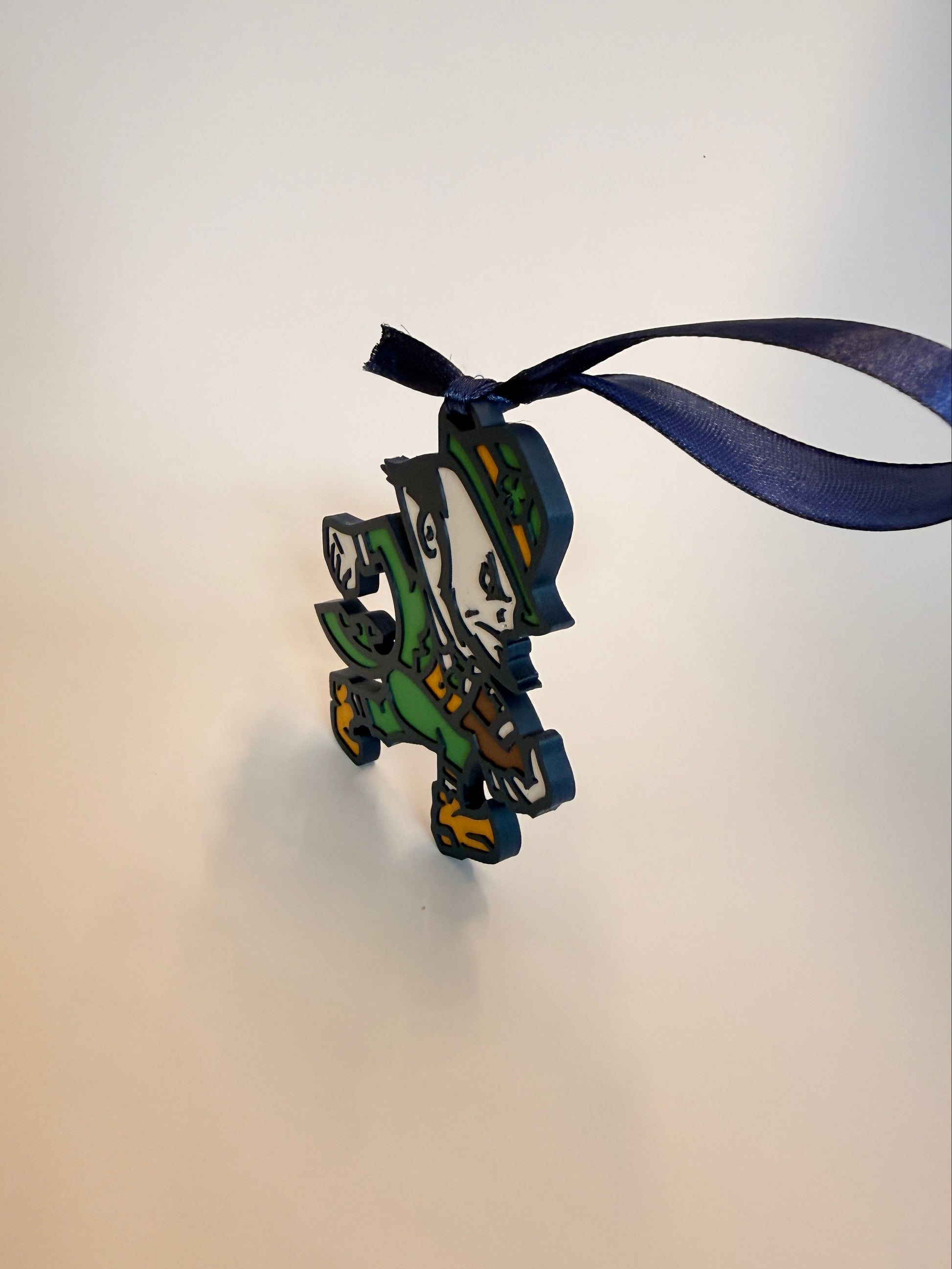 With its classic design and confident pose, it serves as a charming reminder of the traditions and victories that shape your Notre Dame legacy. Whether displayed on your tree or hanging from your car mirror, it brings the excitement of game day and the Fighting Irish pride into your space.